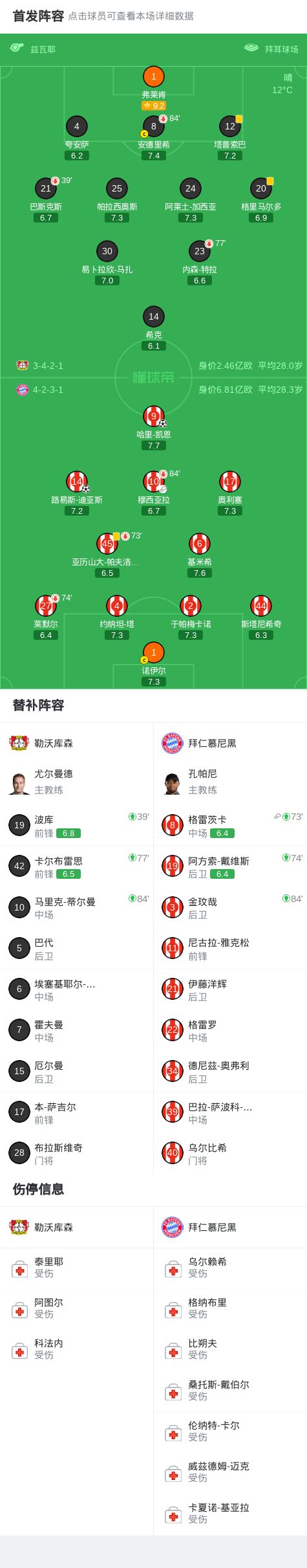 第90+3分钟,格雷茨卡传球,迪亚斯破门,拜仁2-0