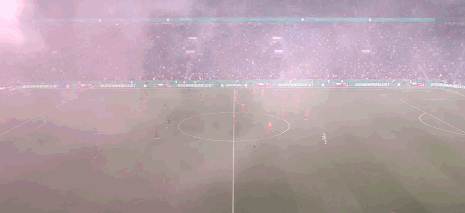 真硝烟弥漫,拜耳球场里全是球迷燃放的烟雾