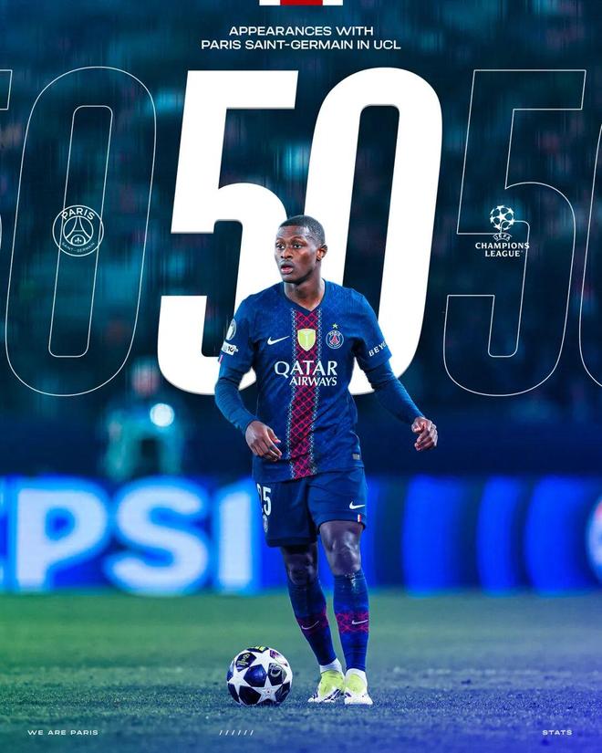 此役,努诺·门德斯迎来了个人PSG生涯第50场欧冠比赛。