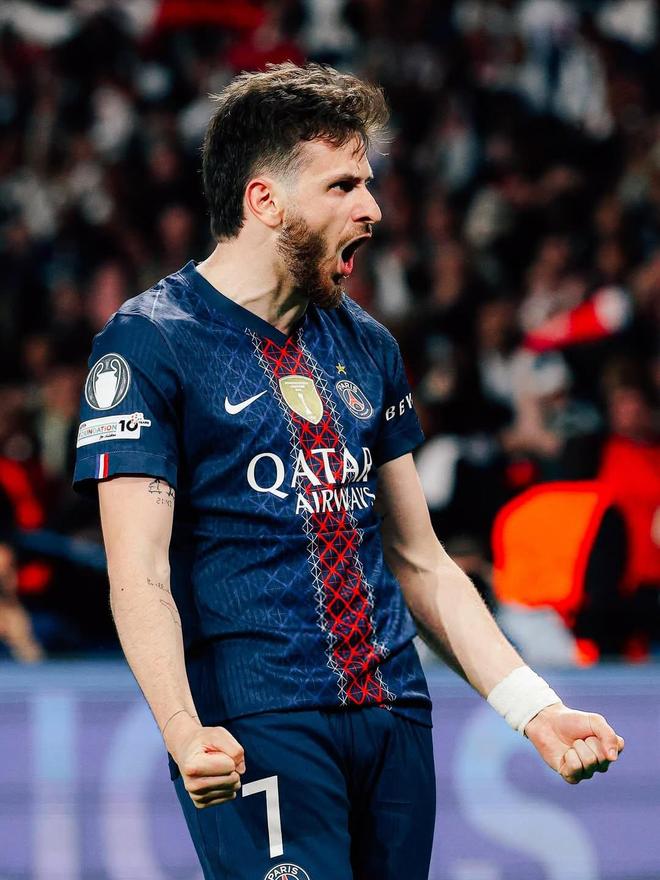赛后,克瓦拉茨赫利亚更新社交媒体动态,他晒出进球后的庆祝照片,并写道:“红与蓝 冲呀❄️(Rouge & Bleulets go ❄️)”