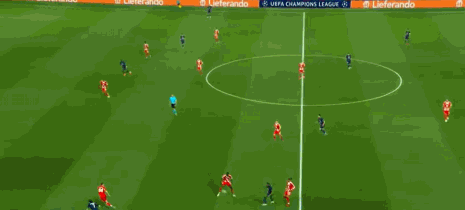 此役拜仁如法炮制,很好地利用了巴黎后卫线和中场之间的空间,多次打出有效传递;反观巴黎,既然对手喜欢高位逼抢,那么通过直塞寻找对方半场的身后空间便成了最大杀招,克瓦拉茨赫利亚的进球过程中,杜埃从右路活动到左路,送出的传球完全将拜仁右后卫斯塔尼希奇甩在了身后。