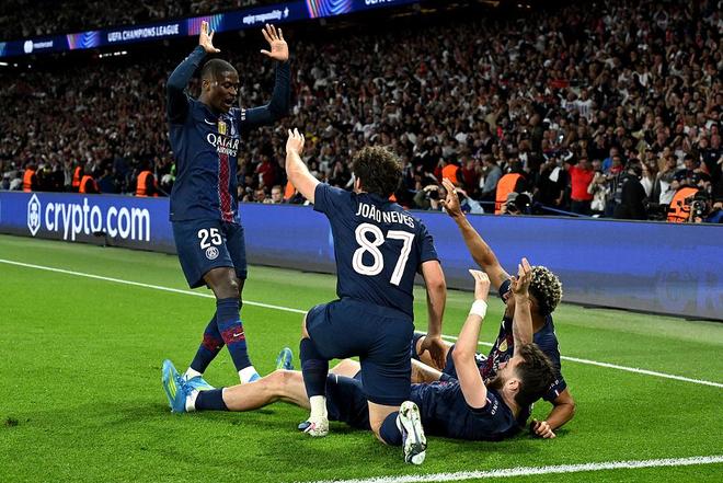 巴黎球员的疯狂庆祝像是一只脚已经踏入了决赛。