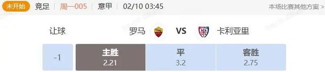 往届战绩方面,双方近十次交手,罗马6胜2平2负占优,不过本赛季首回合罗马客场0-1爆冷输给了卡利亚里。