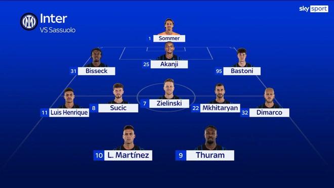 国米周中在意杯中大轮换赢下都灵,绝大部分主力都得到了良好轮休,只有小图拉姆出场时间超过了45分钟,而且下一场国家德比又是6天之后,所以本场比赛并不存在体能问题和轮换需要,球队可以全主力出战!因为恰尔汗奥卢、巴雷拉和邓弗里斯三名主力还未复出,所以国米只能排出目前理论上的最强阵容,相信大家对此都不会有质疑,接下来就看萨索洛能否经得起这套阵容的检验了!