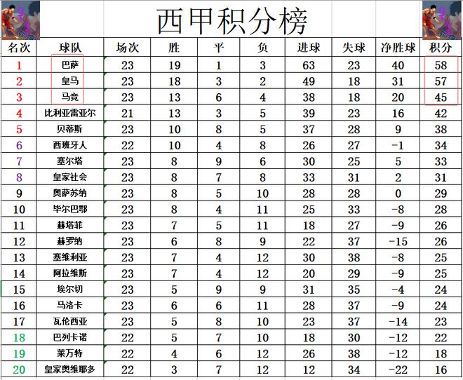 积分榜方面,皇马今天完胜瓦伦西亚后豪夺西甲7连胜,依然还是1分之差紧紧追赶巴萨。另一方面,马竞在主场输球,已经落后皇马12分,少巴萨13分,基本上已经是退出了争冠行列,本赛季冠军争夺应该就是二人转了。