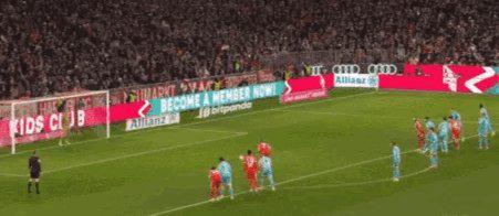 45’2比1 路易斯·迪亚斯左路强行突入禁区,再遭曹法尔放倒,拜仁再次获点,12码点又迎凯恩,相同套路、相同角度,凯恩更大力度击破鲍曼十指关。