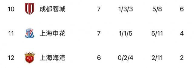 上海海港:0胜2平4负