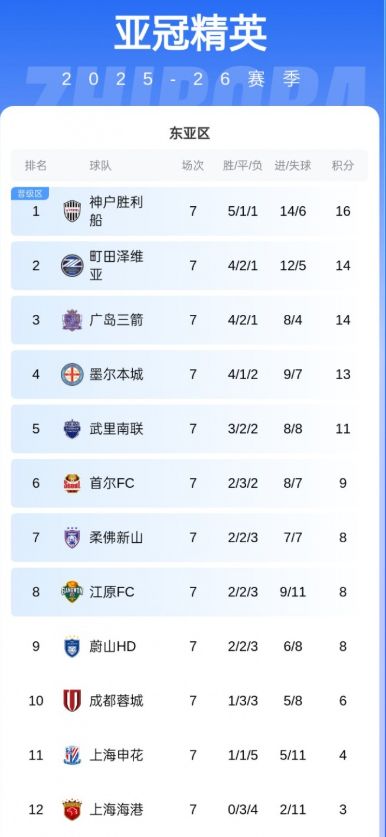 连续12场亚冠未胜,3平9负,上一次取胜是2024年11月26日。本赛季7轮不胜,2026赛季亚冠7轮比赛,战绩为3平4负,未获一胜。客场进球荒:自2025年2月11日以来,连续6个亚冠客场未尝胜绩(3平3负),对阵韩国球队不胜:连续3场对阵韩国球队未能取胜。积分垫底,在目前的亚冠积分榜上,海港以3平4负的战绩稳居倒数第一,如果最后一场比赛还是不能赢球的话,将基本锁定副班长的位置,与中超冠军的身份格格不入。