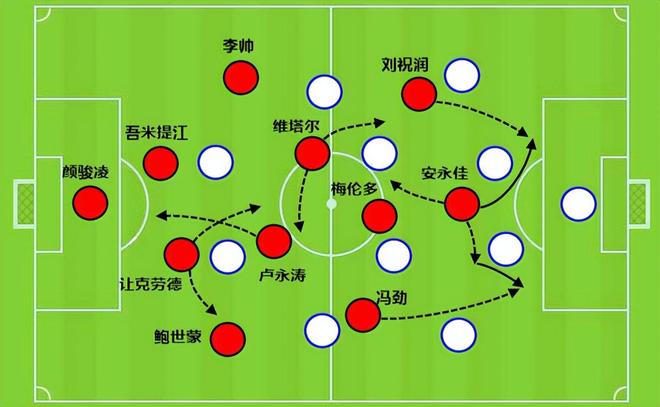 前场的安永佳,在莱昂纳多受伤的情况下,作为中锋算是合格了,他有一定的支点能力,可以争夺头球第一点,那么就能带来后排前插,刘祝润和冯劲都获得了机会,可惜都没能把握住,尤其是冯劲,瞄准了半天,这脚打得太可惜了。