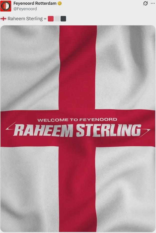 官方:费耶诺德宣布免签斯特林,双方签署了一份本赛季结束后到期的合同。