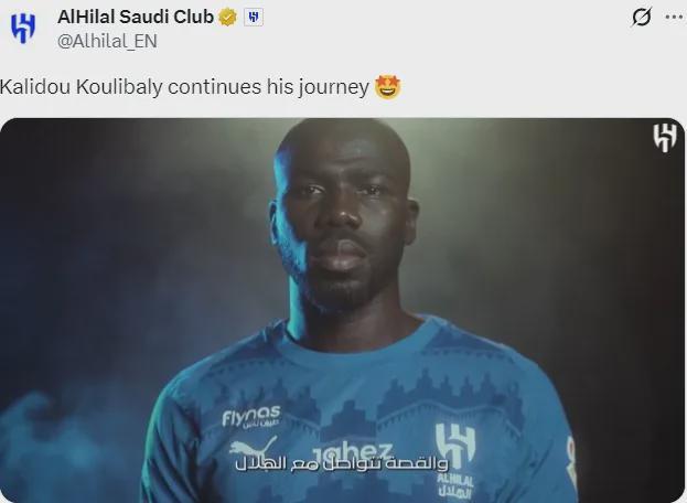 官方:利雅得新月宣布续约库利巴利,这名中卫此前的合同今夏就要到期。