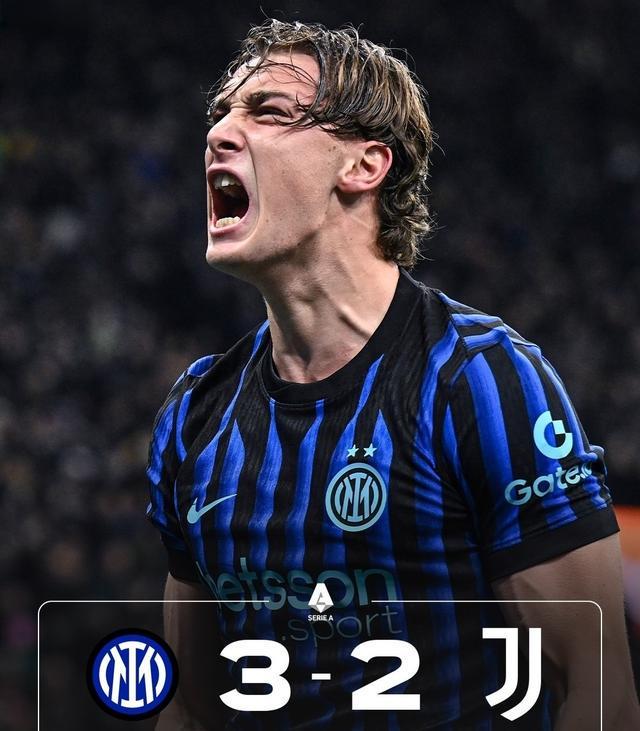 凭借第90分钟泽林斯基的进球,国米3-2绝杀10人尤文,用一场荡气回肠的胜利豪取意甲6连胜,领先优势扩大至8分,将争冠主动权握在手中!