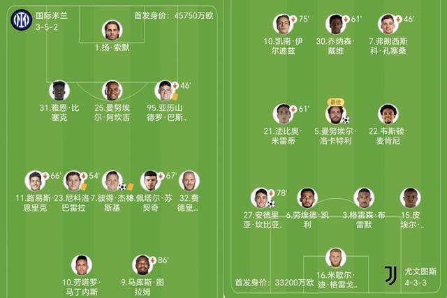 下半场两队易边再战,人数占优的国米持续施压,尤文则坚定顽强防守。