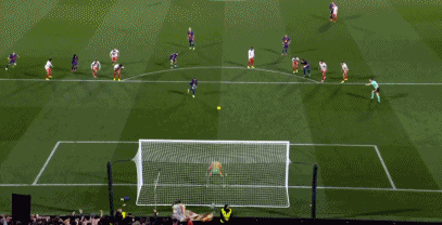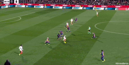 第34分钟,拉菲尼亚直塞,费尔明小角度打门踢飞