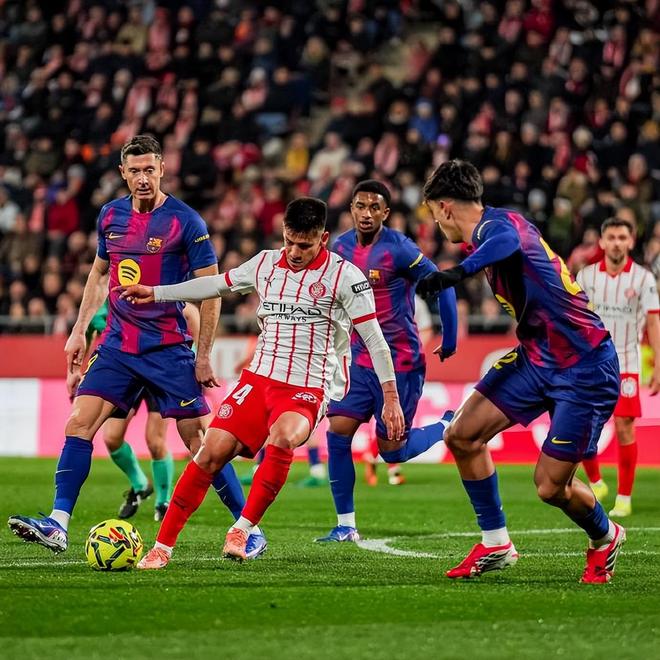 纵观全场比赛,数据呈现出极端反差:巴萨控球率高达71%,全场狂轰26脚射门,却仅4次射正;赫罗纳控球率仅29%,13次射门便有9次射正,高效的终结能力,成为他们取胜的关键。战术层面,赫罗纳采用4-4-2低位死守+闪电反击的战术,全线收缩构筑密集防线,放弃中场控球专注于断球后的快速反击,用极简打法破解了巴萨的传控体系;而巴萨则延续4-3-3传控体系,高位控球、边路传中与中路渗透相结合,但过度传导缺乏穿透力,中场回防迟缓,防线漏洞被赫罗纳精准抓住,最终陷入“控球无用”的尴尬境地。