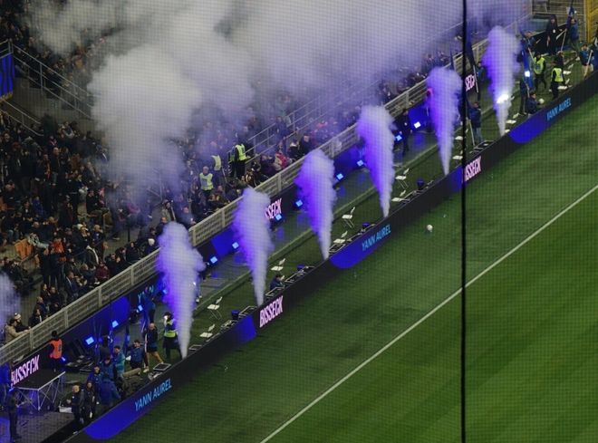 在梅阿查球场是可以抽烟的,经常能看到球迷吞云吐雾。不时还能闻到一种水烟的味道,甜腻腻的,朋友告诉我这可能就是“大麻香烟”的味道。据我粗浅的了解,“大麻香烟”在意大利应该是已经合法了。