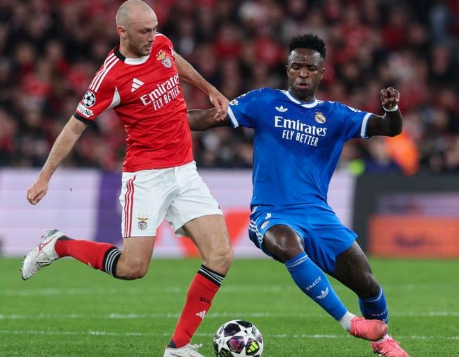 这场比赛开始后双方各有攻势,但都被门将化解了。居莱尔的射门被扑出,维尼修斯的低射稍稍偏出。姆巴佩多次获得机会,但他的射门质量都不高,不是被扑出,就是踢偏了。半场结束,皇马0-0本菲卡。皇马上半场控球率58%,10次射门,4次射正,竟然1粒进球都没有。本菲卡上半场有6次射门,3次射正,也是没能进球。
