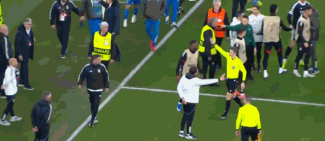 第90+12分钟,维尼修斯准备主罚角球,被球迷投掷的物体击中
