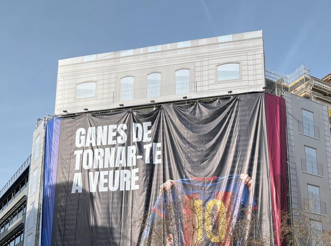 这不是原装的梅西名场面,因为海报里,梅西的名字被隐去了,可能是怕侵权吧。这是马克·西里亚的竞选团队搞出来的广告,配文是:渴望再次见到你。这句话有几层意义。首先是呼唤梅西,希望跟梅西见面,显然不现实。第二就是招募梅西,希望梅西加盟巴萨。第三就是嘲讽拉波尔塔,因为拉波尔塔在上一次竞选的时候,曾经用过这句口号,但他后来背叛了梅西。
