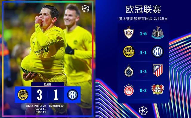 北京时间2月19日4点,25-26赛季欧冠淘汰赛附加赛首回合,挪威球队博德闪耀坐镇主场迎战国际米兰,成功收获3-1胜利。