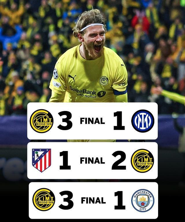 这支挪威劲旅最近太猛了,接连击败曼城、马竞、国米,豪取欧冠三连胜,成为首支取得欧冠三连胜的挪威球队,上演本赛季欧冠黑马狂飙!