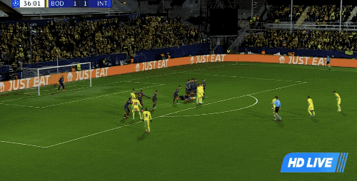 整个上半场,国米完成了10次射门,博德闪耀只有3次射门,两队暂时战成了1-1。