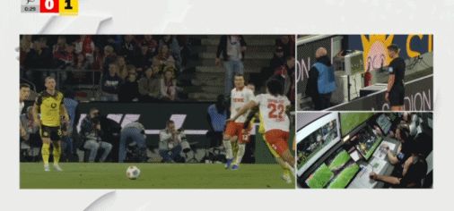 第45+2分钟,辛普森-普西背后踩踏拜尔,裁判回看后改判红牌