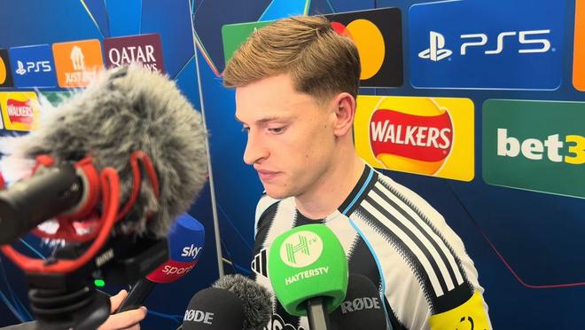 在欧冠1/8决赛首回合打进一球帮助纽卡斯尔联主场1-1战平巴塞罗那之后,哈维-巴恩斯在混合采访区接受了现场诸多媒体的采访。