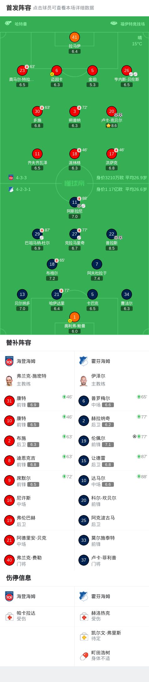 第26分钟,霍芬海姆球员阿斯拉尼助攻普拉斯打入一球。