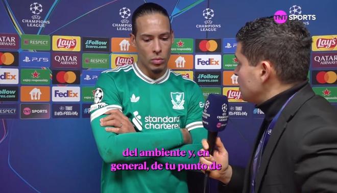 欧冠1/8决赛首回合,利物浦客场0-1输给加拉塔萨雷,范戴克赛后接受了TNT体育墨西哥频道的采访。
