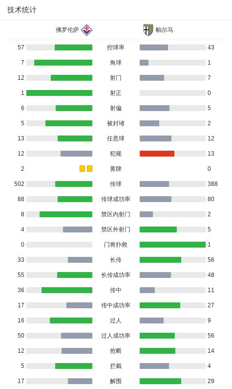 北京时间3月8日意大利足球顶级联赛第28轮,佛罗伦萨主场迎来帕尔马的挑战。本场比赛场面沉闷,双方共1次射正。最终佛罗伦萨0-0战平帕尔马。