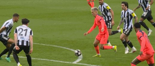 易边再战,巴塞罗那在第66分钟创造出了一次极具威胁的进攻机会,拉菲尼亚左路下底传中,可惜莱万多夫斯基的包抄打门稍稍偏出,2分钟之后,纽卡也获得了一次破门良机,墨菲禁区内无人盯防的情况下,不停球抽射没有压住,一脚高射炮帮助巴萨完成解围。