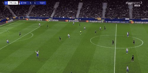 第14分钟,范德芬回防时摔倒送上大礼,格列兹曼冷静将球打进,马竞两球领先。