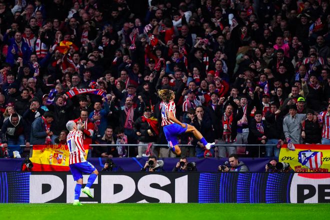 淘汰赛总比分7-4拿下布鲁日后,马竞顺利晋级16强。最近5场各项赛事,马竞4胜1负,只是在国王杯半决赛次回合客场0-3负于巴萨,输球晋级。