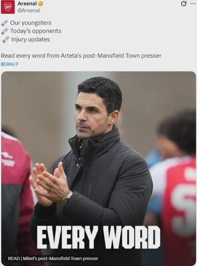 阿尔特塔出席了赛后新闻发布会,我们来看看阿森纳主帅的发言。
