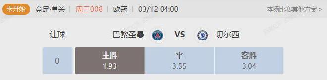 市场给到大巴黎的支持从初始0.75到目前的0.25,卫冕冠军坐镇主场被数据看衰,老何认为机构有做热切尔西的嫌疑,本场比赛是大巴黎的复仇之战,切尔西近6个欧冠客场1胜1平4负表现拉胯,仅上一战客场逆转那不勒斯一场赢球含金量不高,且恩里克的欧战经验能够碾压罗森尼尔,看大巴黎主场先下一城。