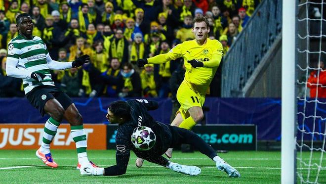 两队首回合比赛一开场,博德闪耀就借助主场之利向着对手的大门发起了猛攻,第32分钟,葡萄牙体育后卫瓦扬尼迪斯在禁区内鲁莽犯规,主裁判果断鸣哨判罚点球!菲特主罚稳稳命中,帮助博德闪耀队率先打破僵局,取得了1-0的领先!