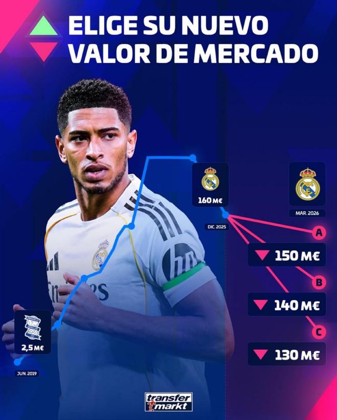 德转预热贝林厄姆身价下跌:最高1.5亿欧,最低1.3亿欧