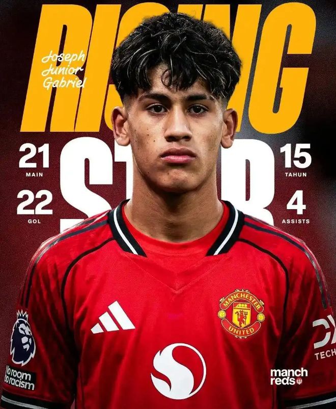 去年,他首次代表曼联梯队出场,就以14岁的年纪成为俱乐部U18队史最年轻的登场球员,首秀面对利兹联还梅开二度。