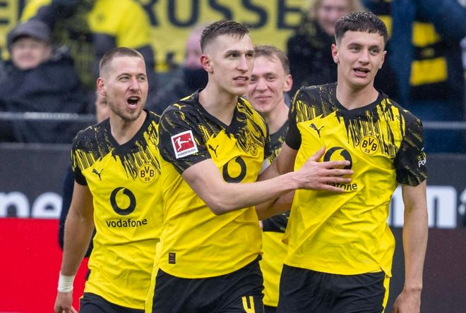 本场比赛多特蒙德排出了3421阵型。拜尔顶在最前面。萨比策和阿德耶米在他身后。瑞尔森、乔布-贝林厄姆、恩梅加和丹尼尔-斯文松4中场联袂出击。卢卡-雷贾尼、安东和施洛特贝克3后卫首发出战。科贝尔担任首发门将。吉拉西、厄兹詹和丘库埃梅卡坐在替补席待命。本塞拜尼停赛。