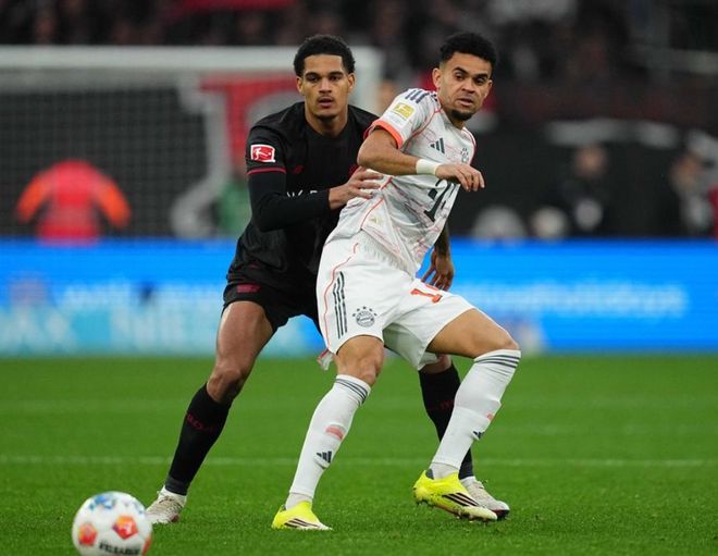 第71分钟,凯恩超远距离吊射,高度不够。门将把球扑出。第84分钟,迪亚斯禁区内倒地,被判假摔,两黄变一红被罚下。拜仁2人被罚下。补时阶段,霍夫曼进球被吹掉。最终,拜仁1-1勒沃库森。