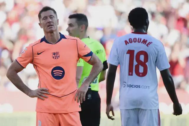 去年10月的西甲第8轮,巴萨客场1-4输给塞维利亚。那场比赛,巴萨攻防两端表现糟糕:阿劳霍送点球,莱万罚丢点球,全队斗志不足,防守松散,进攻效率低。惨败给塞维利亚之后,巴萨丢掉榜首宝座。