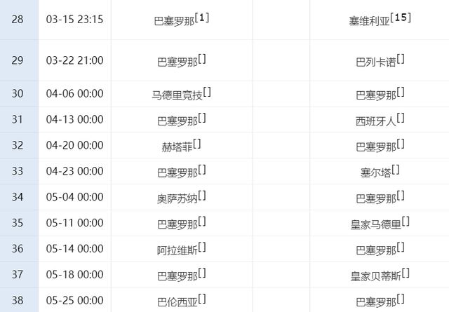 截至目前,皇马在西甲继续排名第二,榜首2强的差距,也缩小到1分。接下来,压力来到巴萨身上了,本轮他们将在主场迎战塞维利亚,这场比赛巴萨没有任何退路,他们必须击败对手,继续保持4分的领先优势,否则的话,巴萨未必就能顺利夺冠,因为后面他们还有至少4场恶战。