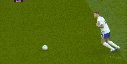 不过随着曼联看到了一些优势,从而将阵线前压,维拉也借此获得了打反击的空间,所以在上半场临近结束时,一次长传直打身后: