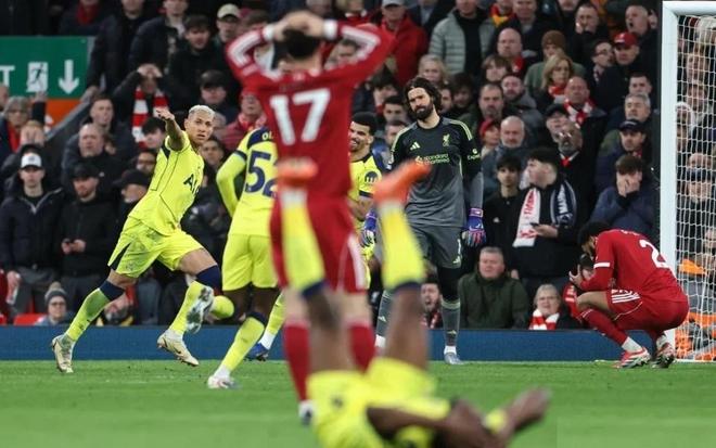 第36分钟,加克波的远射被门将扑了一下后击中门柱弹出,热刺逃过一劫。第43分钟,范戴克横传门前可惜无人包抄。而在上半场最后时刻,里沙利松连续射门造险,但与得分擦肩而过。半场结束,利物浦主场1-0领先。