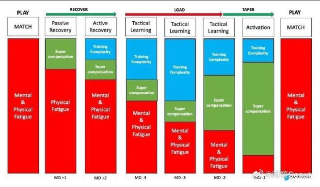 在这种模式下,比赛本身是核心刺激。非比赛日的训练强调战术清晰度、决策与新鲜度。在没有周中比赛时,球队甚至会有连续三天的假期。这在战术周期化理论中是合理的,旨在保留精力并磨炼认知。