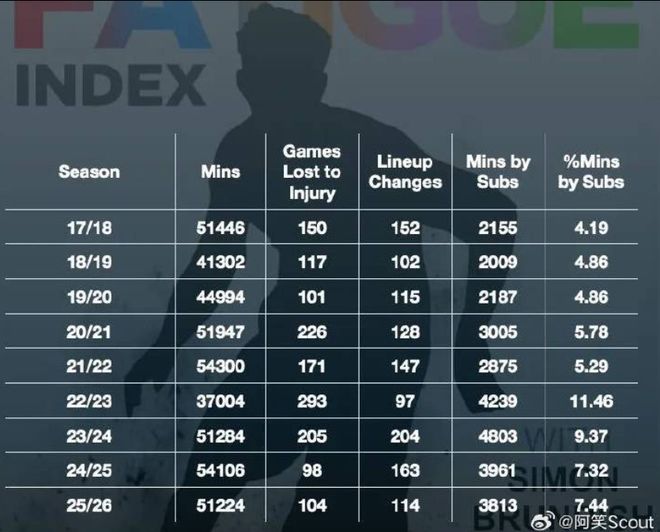 他曾是赛季全勤的球员,但在新架构下迅速陷入了“伤病循环”:半腱肌拉伤 -> 22天后复出 -> 6周内累积低量时间 -> 对侧腘绳肌撕裂 -> 复出后再遭股直肌撕裂。