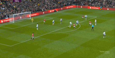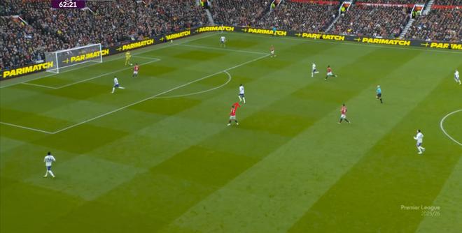 所以到了第63分钟,当布鲁诺带着全队向前逼抢的时候,阿斯顿维拉就这样打穿了曼联的防守: