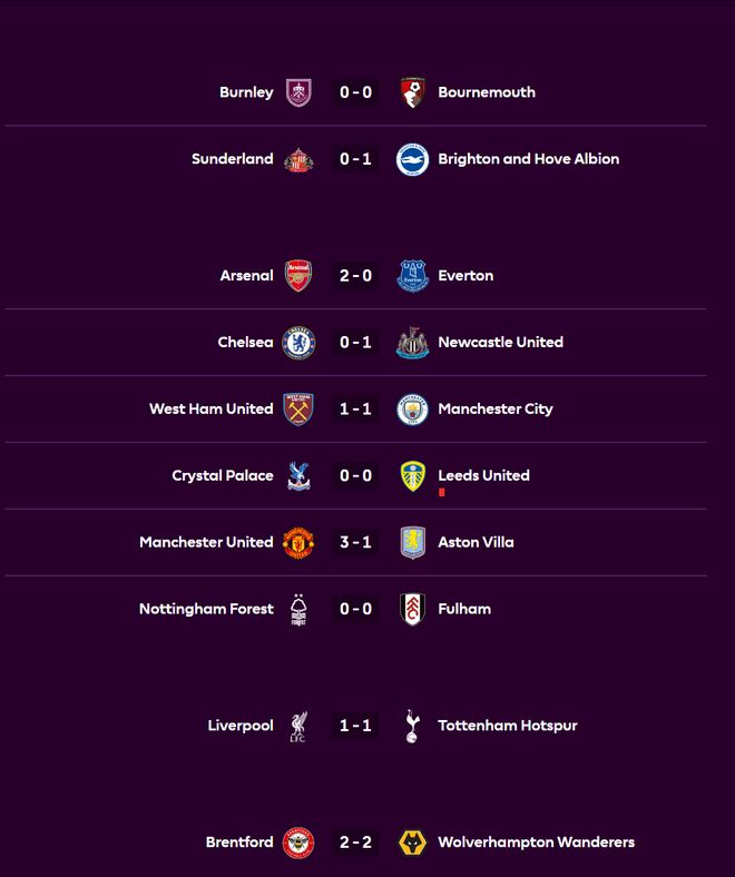 北京时间3月17日凌晨,布伦特福德2比2战平狼队,英超第30轮十场比赛全部结束。阿森纳2比0击败埃弗顿,而曼城造访伦敦则是1比1遭西汉姆联顽强逼平,阿森纳借此机会将积分领先优势扩大至9分(多赛一场),而曼联3比1力克阿斯顿维拉,积54分领先后者3分,坐稳第3。利物浦主场遭热刺1比1绝平,未能反超维拉,但仍超越本轮0比1负于纽卡斯尔联的切尔西,升至第5,蓝军则排名第6。