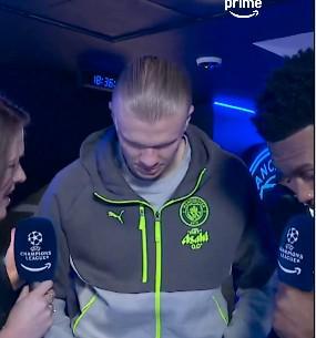 欧冠1/8决赛次回合,曼城将主场对阵皇马,曼城前锋哈兰德赛前接受了亚马逊体育的采访。
